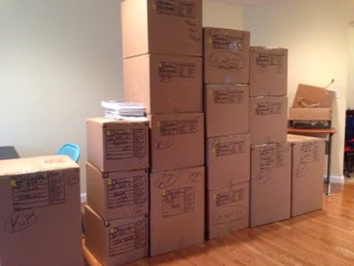 Now it is 11pm and Mike & I are both fairly catatonic. Tomorrow the packers will be here at 8, Charlie has to get off to school, Mike has a doctors appointment, car service, and has to drop the modem and cable boxes off at comcast. I have to pick up the kids medical records and grab something at Iparty for Charlie to pass out at school on Tuesday, his last day. And we have to actually get the TVs packed.